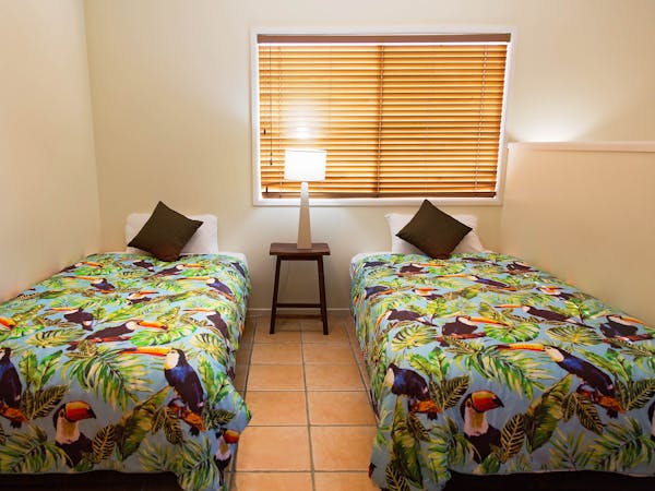 Located at the rear of the property these rooms are much larger than usual. Upstairs or Downstairs options available. Each comfortable air conditioned room has a queen and single bed & trundle bed perfect for the family or sporting group. Room Size 40 m²